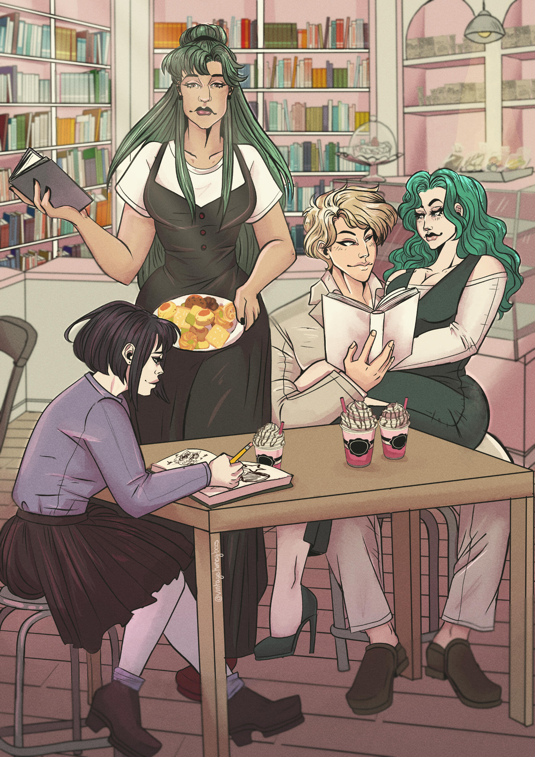 more info ✧ A Sailor Moon zine! We had to give a time of day to create our piece for and I chose midday; a group "date" at a local cafe!