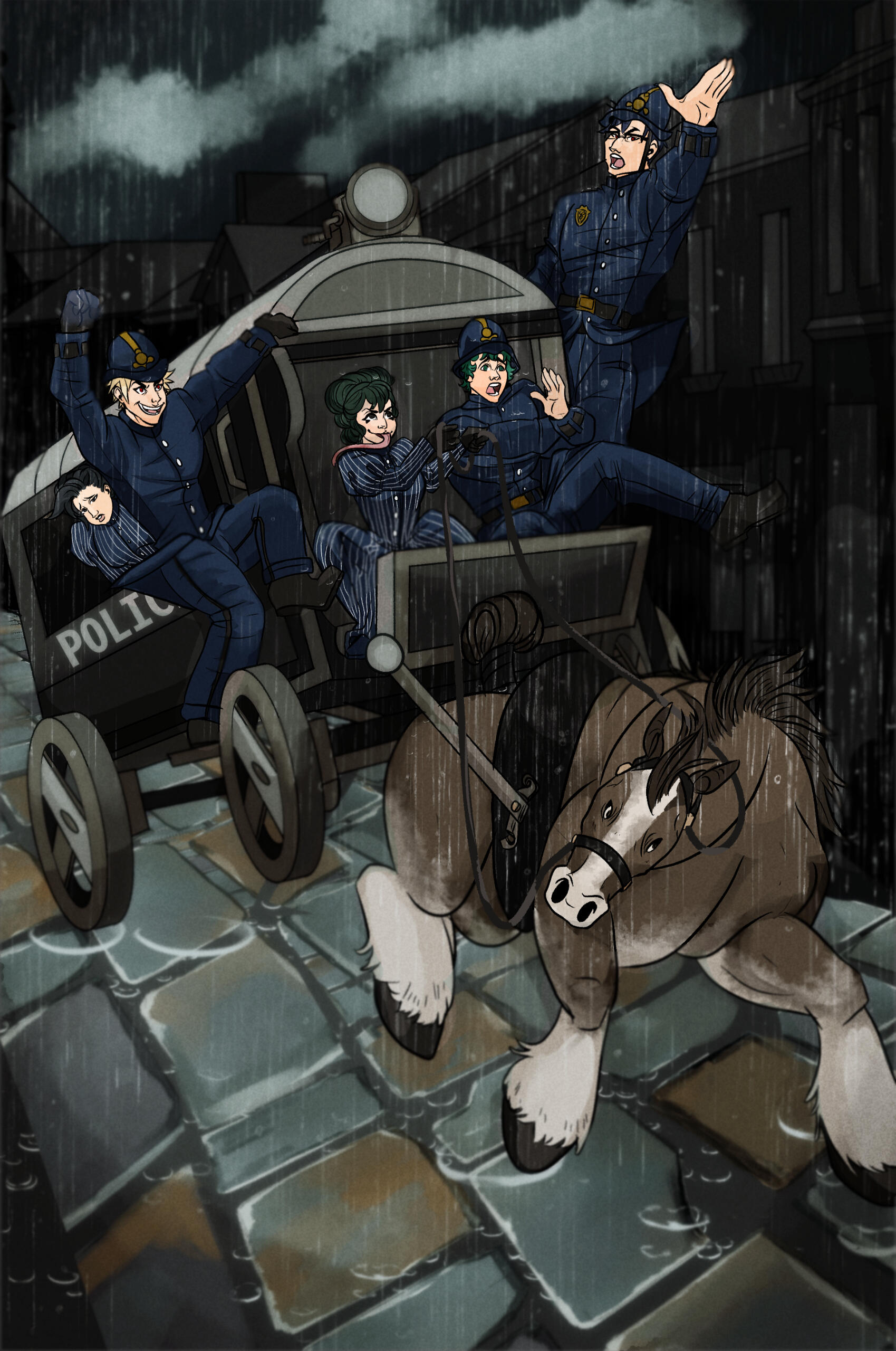 more info ✧ A MHA first responders zine! I was able to work with a non-modern version of a first responder, taking it back to the Victorian era! Do we actually trust Tsu to drive this thing safely....?