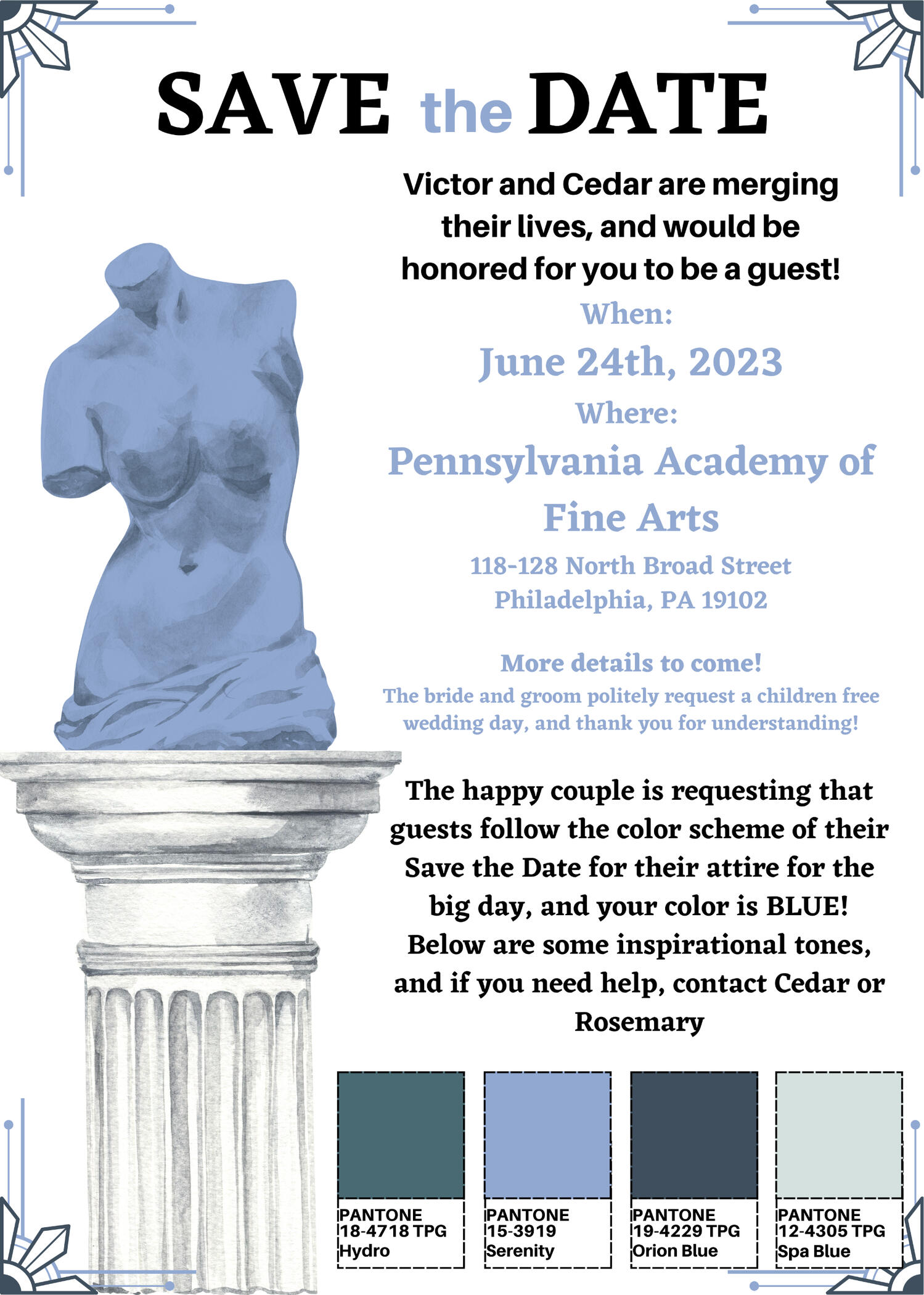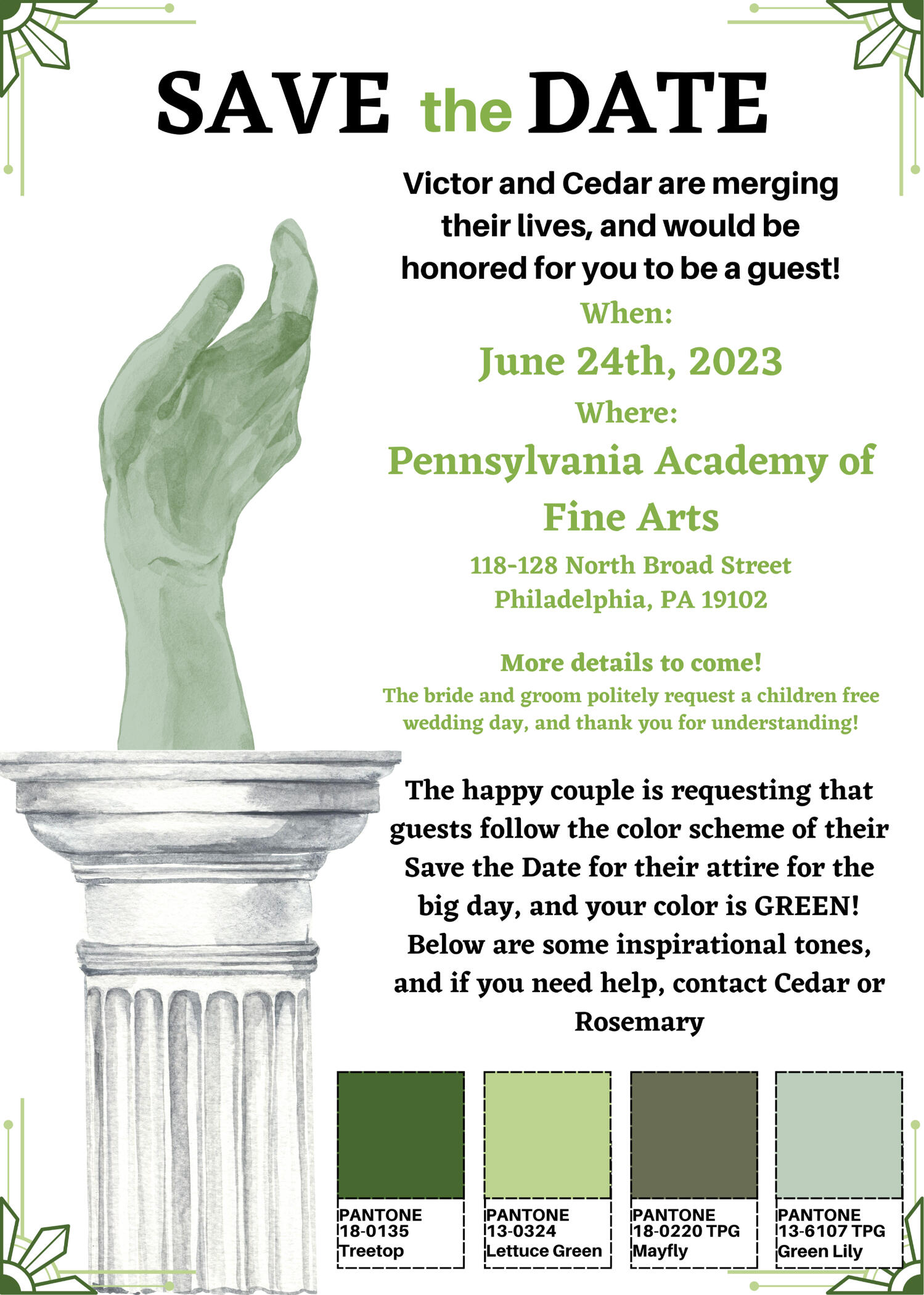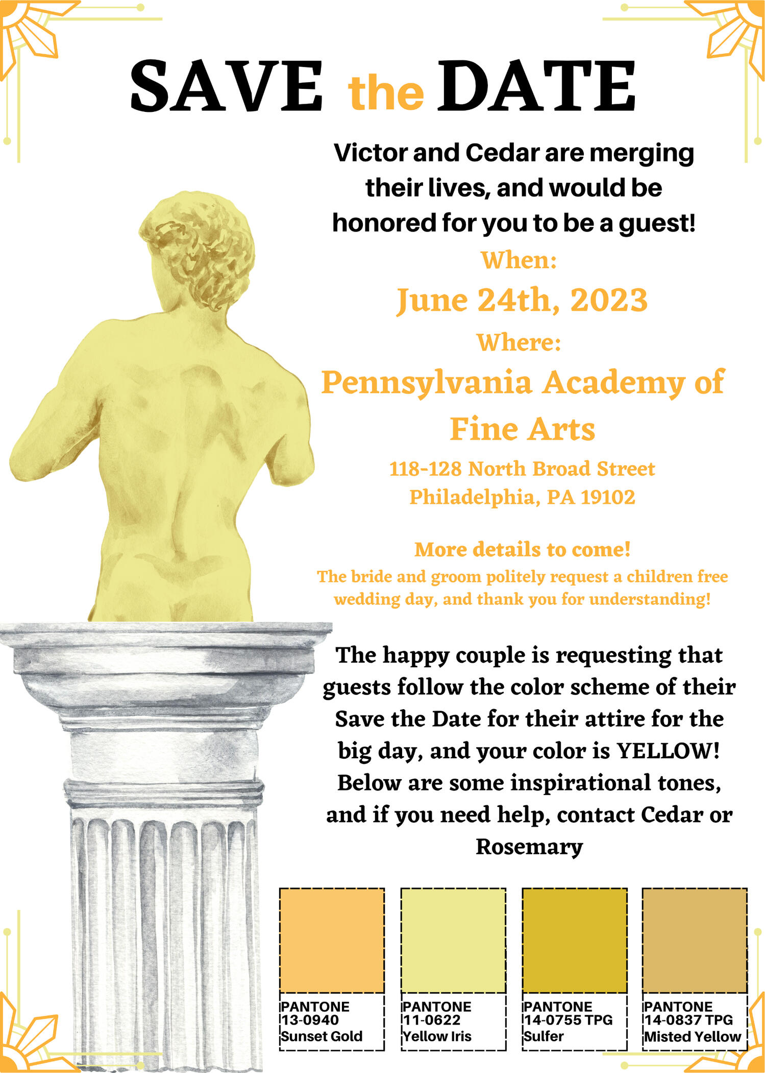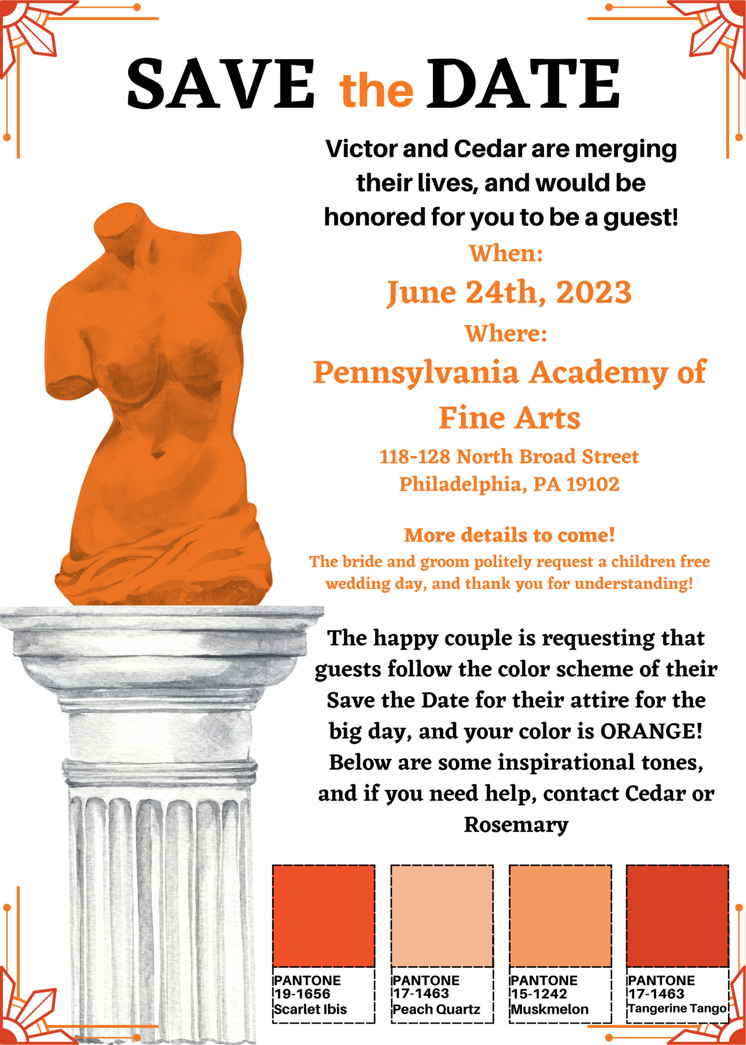 These Save the Dates are inspired by how the PANTONE colors are displayed online. There is one for every color of the rainbow plus pink!