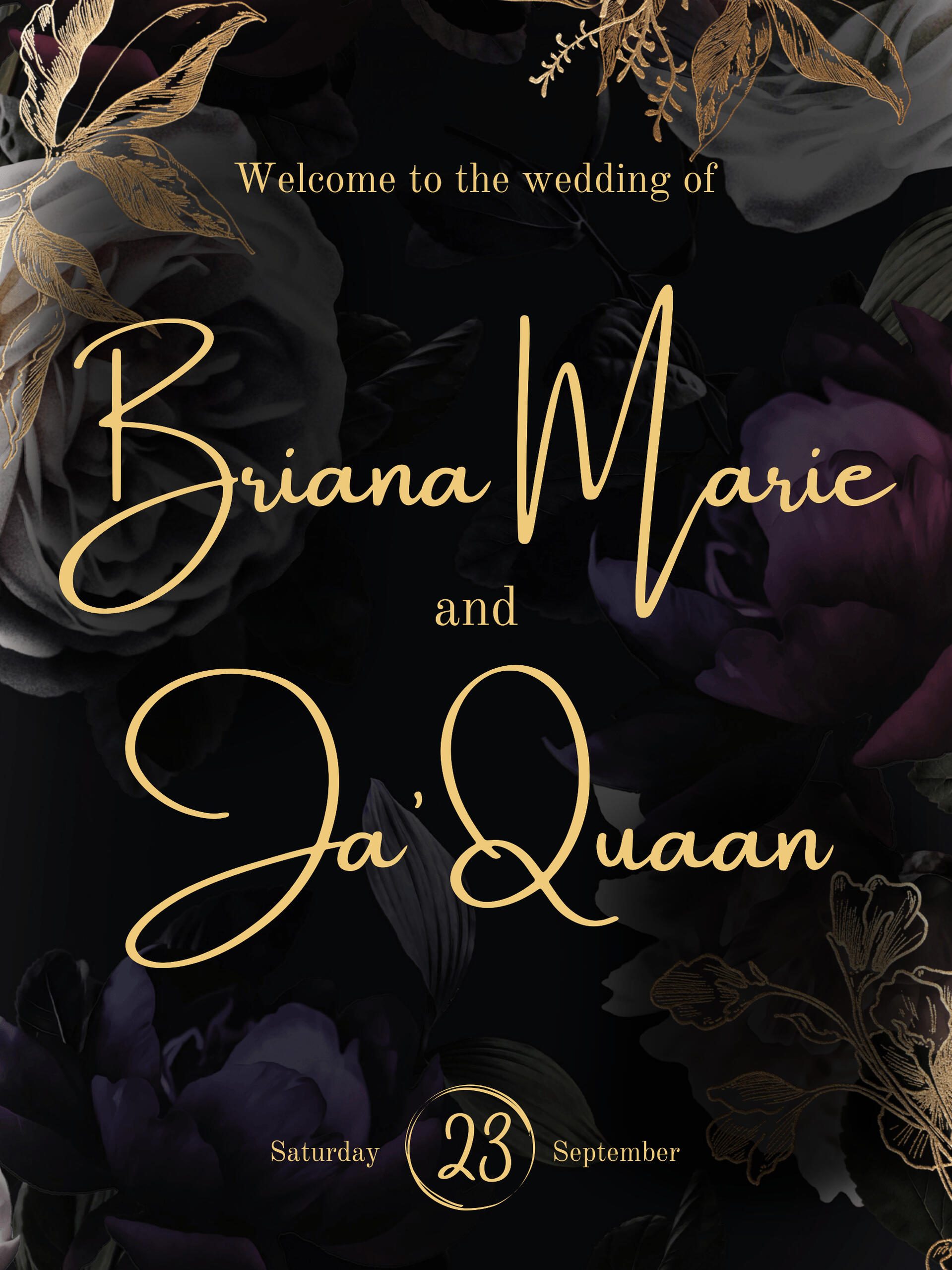 The bride and groom wanted a large welcome poster to greet their guests on the way in to the venue. This was printed out into a large poster size and placed in a large frame