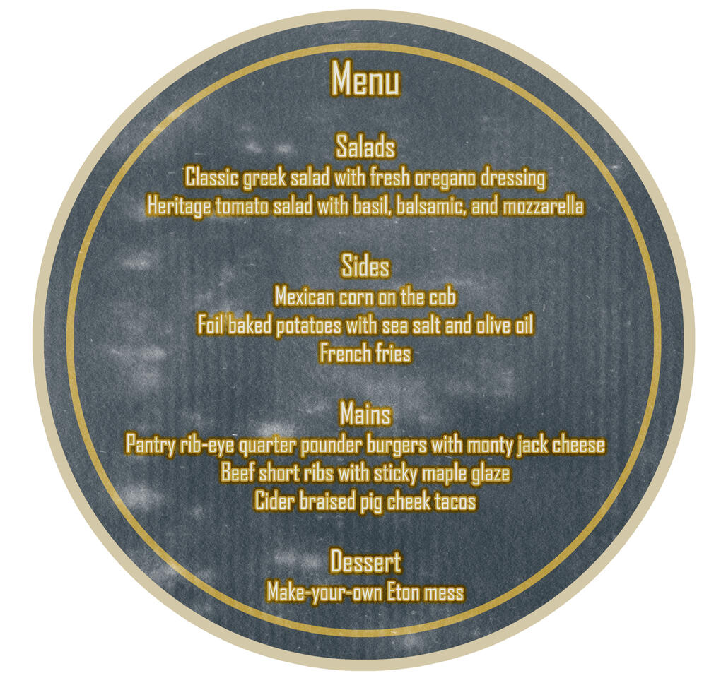 Bride requested to have the menu's match the shape of the invitation, and keep the same grunge paper aesthetic!