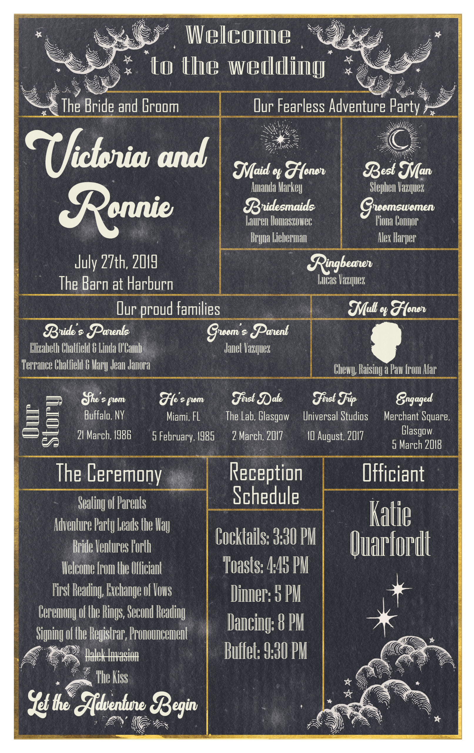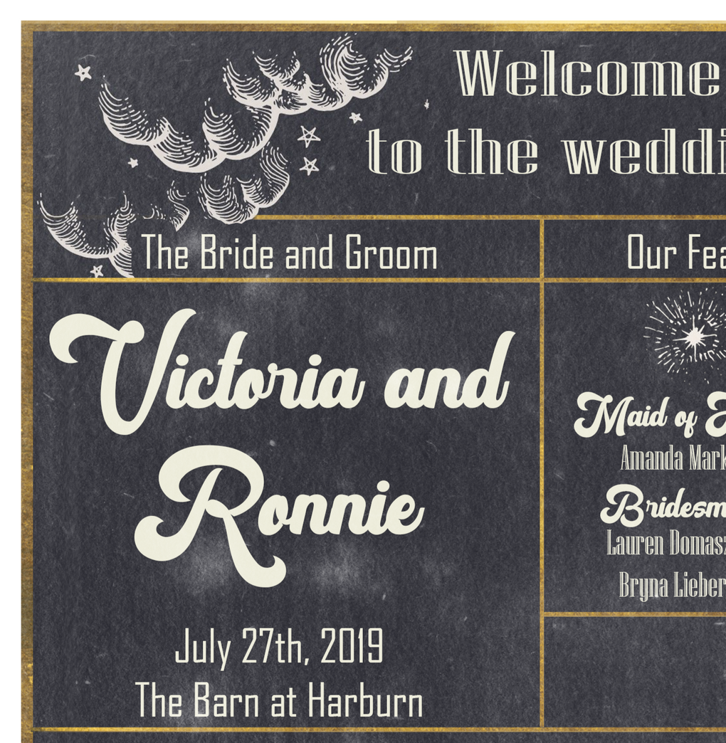 The bride and groom wanted a large welcome poster to greet their guests on the way in to the venue. This was printed out into a large poster size and placed in a large frame